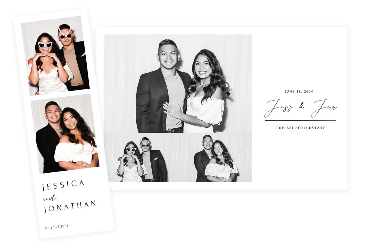 Everyone gets a print! Whether you love the classic 2x6 print strips or the larger, premium 4x6 prints, either option is included in our packages! Also we can do pretty much any design you dream of! Our in-house graphic designer will craft a custom framed print to match perfectly with your theme and style.